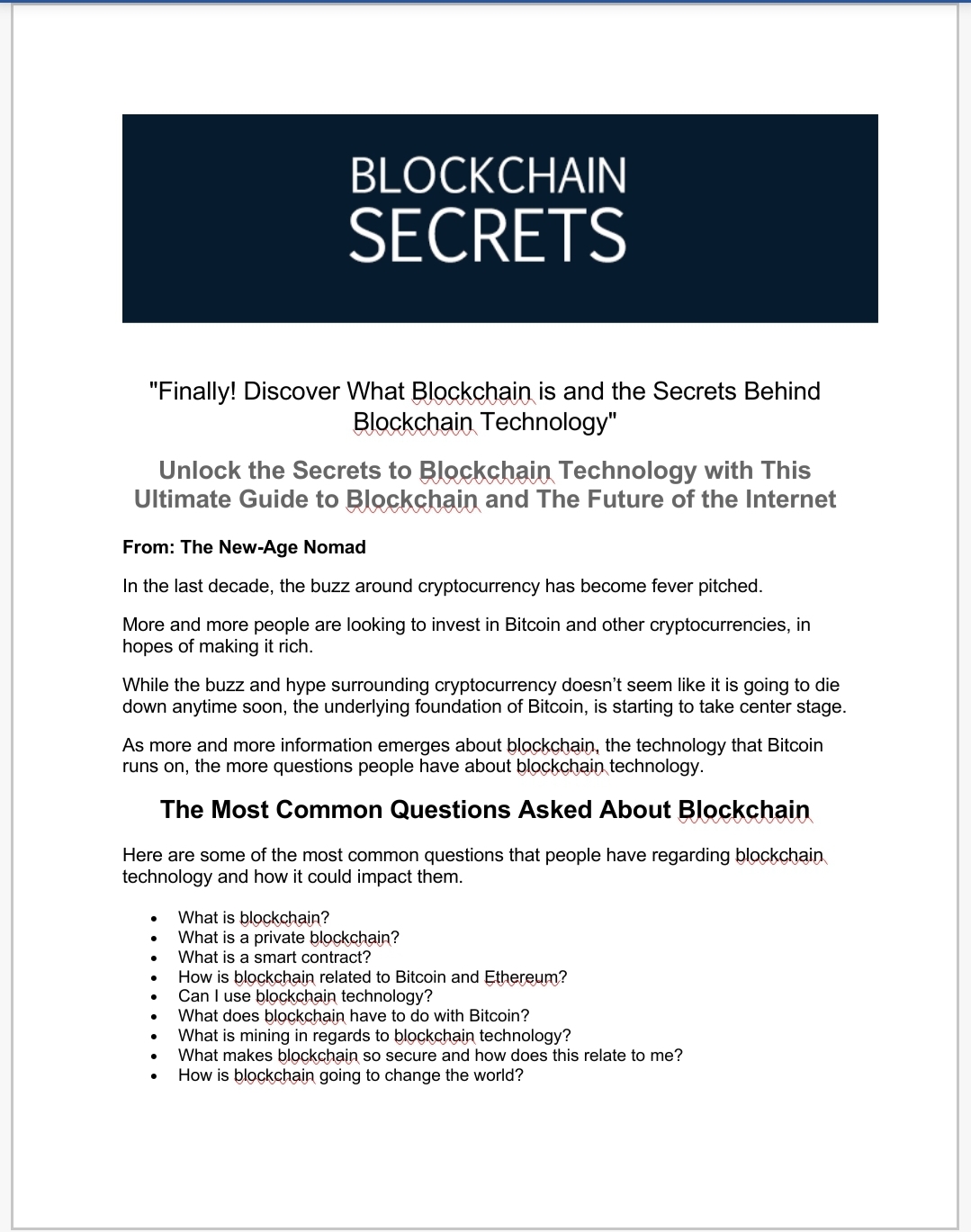 When you download this course you will uncover the secrets of blockchain technology and how it is poised to take over the Internet and change the world as we know it.
